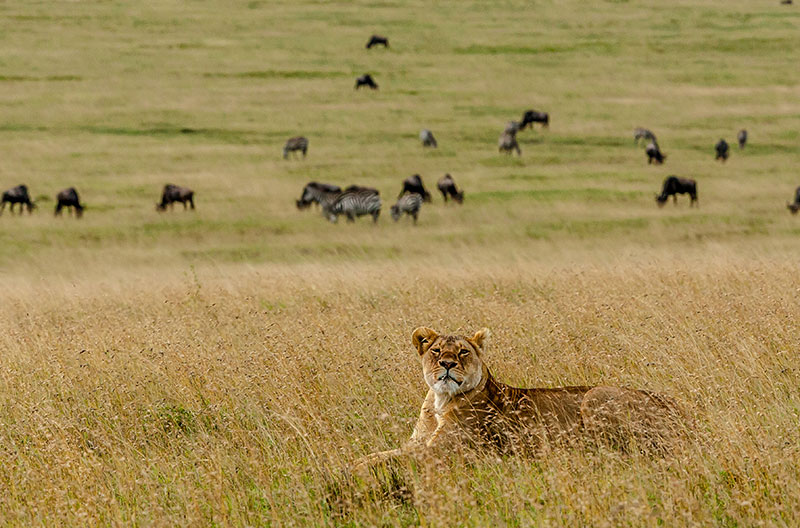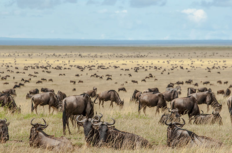 Go to Serengeti and follow the annual migration. It is rated as one of the world's most spectacular natural events - every year over a million wildebeest, zebra and antelope migrate clockwise around the Serengeti/Masai Mara ecosystem, taking in two different countries and making time for birthing, courting and mating on the way.